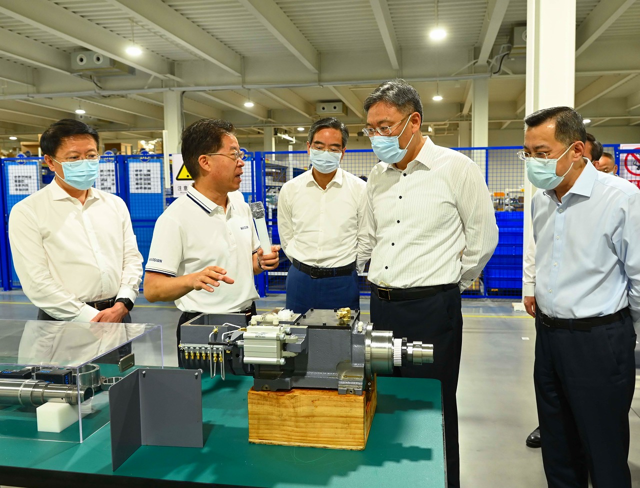 王文濤詳細聽取了山東新景集團董事長、西鐵城(中國)精密機械有限公司董事總經(jīng)理楊冰對產(chǎn)業(yè)園生產(chǎn)經(jīng)營、產(chǎn)品研發(fā)、市場開拓等情況的介紹,參觀了方案中心及生產(chǎn)車間并給予充分肯定。王文濤指出工業(yè)母機是國家基礎制造能力的綜合體現(xiàn),特別是高檔數(shù)控機床,其技術水平代表了國家工業(yè)化的水平,西鐵城新景高端裝備智能制造產(chǎn)業(yè)園的優(yōu)勢要形成模式大力推廣,確保產(chǎn)業(yè)鏈供應鏈暢通,強化產(chǎn)業(yè)鏈協(xié)同創(chuàng)新,切實把制造業(yè)做大做優(yōu)做強。
