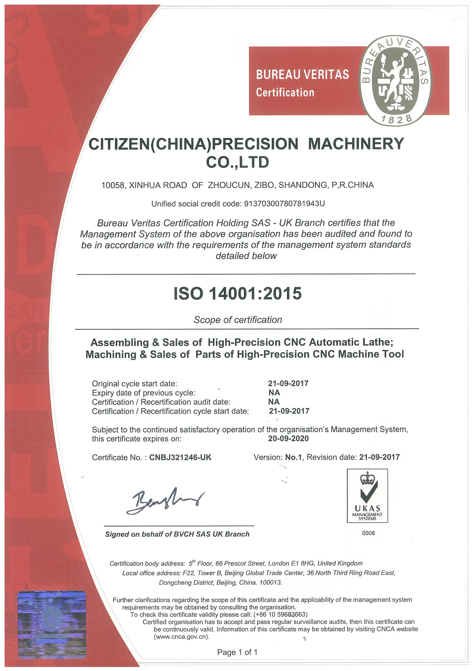 2017年9月21日,公司順利通過ISO14001:2015環境管理體系認證。